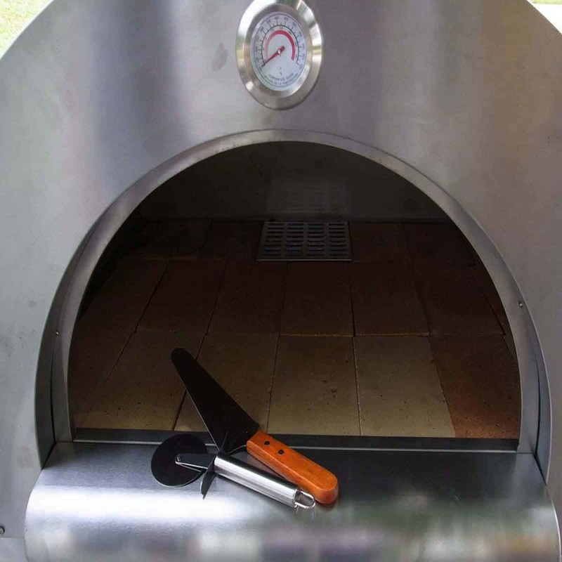 - Edelstahl und Backsteinbau: Der Ofen wird vom hochwertigen Edelstahl und vom Ziegelstein gemacht und stellt Haltbarkeit und Langlebigkeit sicher.